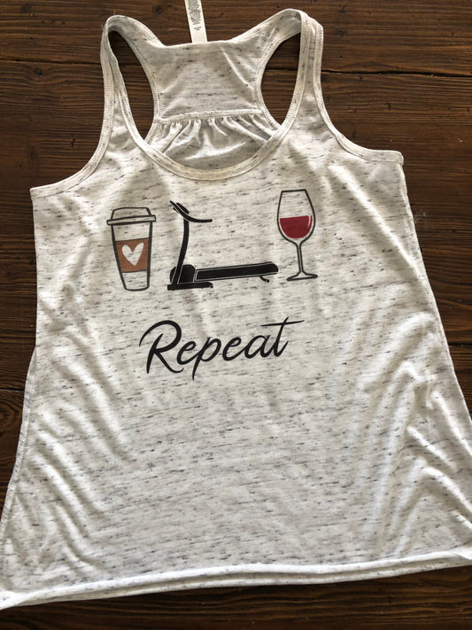 Coffee Tread Wine Repeat Bella Ladies Flowy Racerback Tank