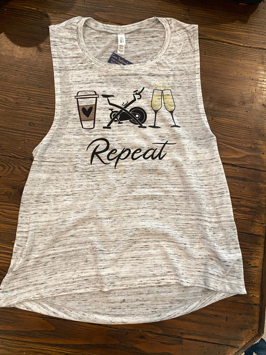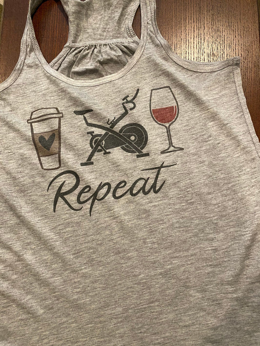 Coffee Bike Wine Repeat Bella Ladies Flowy Racerback Tank